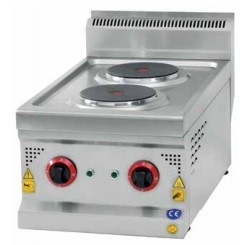 SOE470 | Masina de gatit cu 2 plite electrice, de banc, diametru plita 220mm, structura din inox, alimentare 220 V/50 Hz, putere 4 kW, buton cu 6 trepte de putere; greutate 16 kg | 400x700x300 | 387€ |