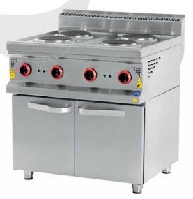 DOE870 | Masina de gatit cu 4 plite pe suport inchis cu 2 usi batante,diametru plita 220mm, structura din inox, alimentare 220 V/50 Hz, putere 8 kW,buton cu 6 trepte de putere; greutate 53 kg | 800x700x850 | 1020 € |