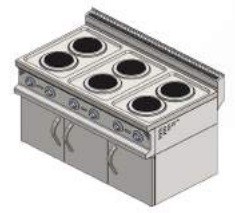 DOE1270 | Masina de gatit cu 6 plite pe suport inchis cu 3 usi batante,diametru plita 220mm, structura din inox, alimentare 380 V/50 Hz, putere 12 kW,buton cu 6 trepte de putere; greutate 80 kg | 1200x700x850 mm | 1188€ |