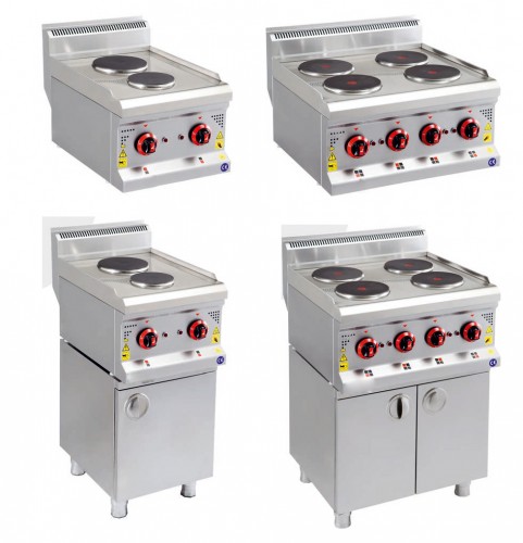 | KRCS-DOE660 | Aragaz electric 4 plite pe suport, realizat din inox, alimentare 220 V/50 Hz, putere 8 kW, greutate 45 kg | 600x600x850 mm | 735 € |