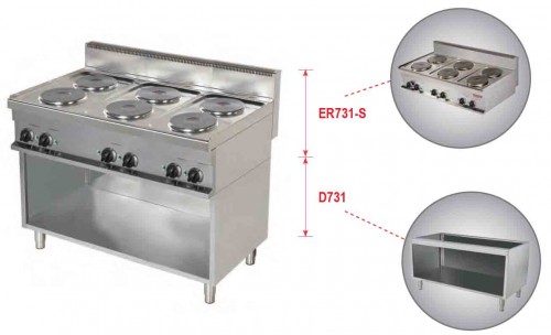 ER731 | Masina de gatit cu 6 plite rotunde de banc, alimentare 380V, putere 6x2,6kW, greutate 87 KG | 1200x700x900 (mm) | cere pret |