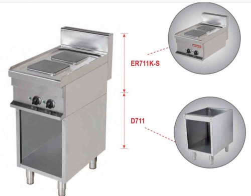 ER711K | Masina de gatit cu 2 plite patrate 220x220 mm, pe suport; 2x2.6 kW , cu putere reglabila prin intermediul comutatoarelor cu 7 pozitii; alimentare 380V, greutate 45.5 kg | 400x700x920 (mm) | cere pret |