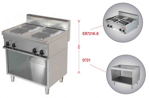 ER721K | Masina de gatit cu 4 plite patrate de banc, alimentare 380V, putere 4x2,6 kW, greutate 57 kg | 800x700x290 (mm) | cere pret |