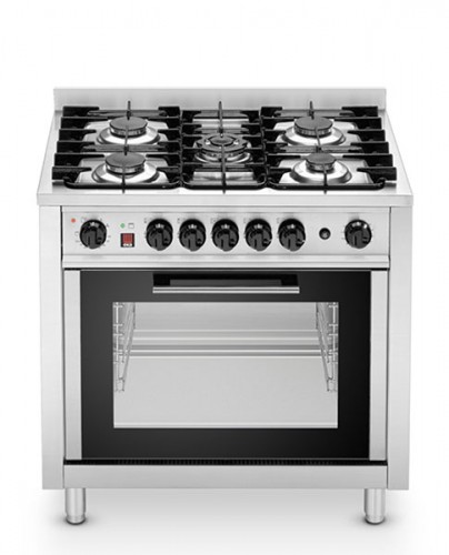 | EKC96 | Masina de gatit inox cu 5 focuri alimentare gaz si cuptor electric 4 GN1/1, alimentare 220V, putere 2,9 kW, rezistenta GRILL, 2,5 kW, 2 motoare monodirectionale, putere termica nominala 14,3 kW, picioare reglabile pe inaltime, greutate 74 kg; | 900x600x900 mm | cere pret |
