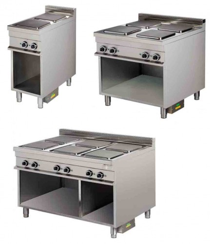 Masina de gatit 4 plite patrate 300x300mm pe suport neutru deschis, protectie dubla impotriva supraincalzirii; alimentare 380V, putere 4x4kW controlata prin buton pe 7 trepte, greutate 118 kg |