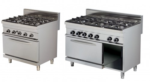GR732E | Masina de gatit cu 6 focuri alimentare gaz si cuptor GN1/1 electric alimentat la 220V, flacara pilot, valva de siguranta cu termocupla; controlata de termostate impotiva supraincalzirii, cuptor cu ventilatie, putere 6x6kw+3kw, consum gaz retea 3,75 m3/h, consum gaz butelie 2,82 kg/h, greutate 140 kg | 1200x700x900 (mm) | 3625 € |
