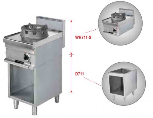 WR711 | Masina de gatit Wok cu 1 foc, pe suport, alimentare gaz, putere 16 kW, consum gaz retea 1.25 m3/h; consum gaz butelie 0.94 kg/h; prevazuta cu valva de siguranta si termocupla, greutate 45.5 kg | 400x700x920 (mm) | cere pret |