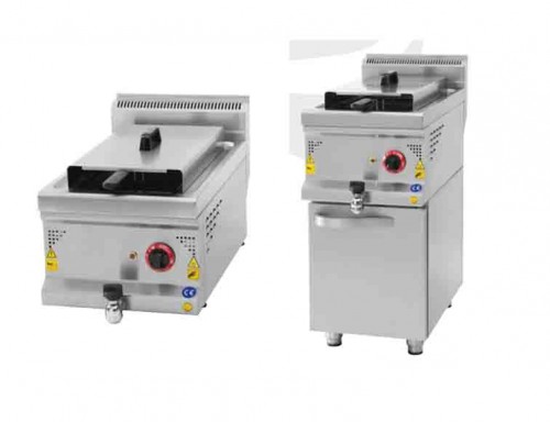 Friteusa inox cu 1 cuva,pe suport inchis cu 1 usa, capacitate cuva 12 litri, prevazuta cu robinet de scurgere a uleiului, termostat de lucru si de siguranta, Putere 9kW; alimentare 380 V, echipata cu cos si capac, greutate 35 kg |