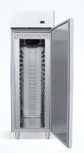 UKT70 | Congelator inox Tp.304 pentru patiserie (tavi 400x600mm), cu 1 usa, interior/exterior inox, izolatie cu poliuretan ecologic de 7 cm (8 cm la partea de jos), colturi rotunjite, volum 600 litri, Putere 650 W, TEMP 0°C/-20°C, capacitate pt 17 tavi 400x600mm, picioare ajustabile pe inaltime, usa cu autoinchidere, oprire automata a ventilatorului cand usile sunt deschise, Freon ecologic R290, sistem de distribuire a aerului pentru o racire uniforma, dimens. usa 690x1675 mm, aliment. 220 V, compresor 1/2 HP, putere 650 W; control digital, dezghetare automata, greutate 127 kg. | 700x820x2070 mm | 2022 € |