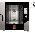 MKF464TS | Cuptor MILLENNIAL COMBI cu TOUCH SCREEN , fabricatie ITALIA, alimentare 380V, vaporizare directa controlata prin touch screen (10 nivele), capacitate 4 tavi 600X400, distanta dintre tavi 80 mm; tip de coacere: semistatic + ventilata; temp +30°C/+270°C; Sonda digitala pt controlul temperaturii; se pot folosi 500 de programe cu 10 faze de coacere/program, functia de preincalzire programabila, temp de preincalzire 180°C , putere alimentare 7.8 KW; prevazut cu 1 motor bidirectional, folosirea concomitenta a sistemelor de distribuire uniforma, umidificare si uscare permit atingerea parametrilor de coacere doriti in fiecare zona a cuptorului; Port USB pt incarcare/descarcare retete; sistem de transmitere WI-FI; se pot inregistra 40 de retete; Sistem de spalare automatic, meniu in 42 limbi (italiana, engleza, germana, romana, etc), protectie impotriva apei IPX5; buton pentru selectare rapida TOUCH SCREEN; sistem de colectare si drenare a condensului pe usa; greutate 92.4 kg. | 850x1035x700 | 5418 € |