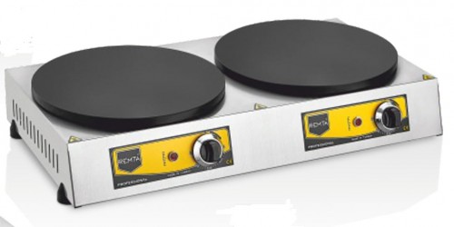 Aparat clatite-crepiera dublu din inox, placa incalzire fonta, Ø 400 mm, putere 5000W, control termostatic, alimentare 220V/50 Hz, greutate 21 kg