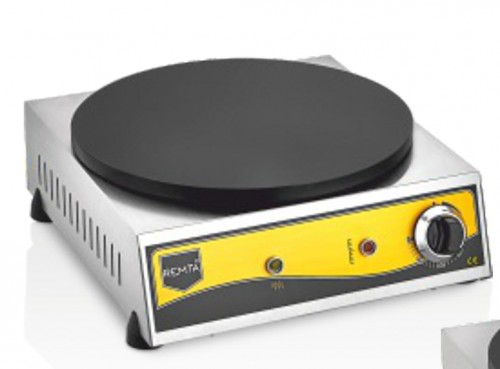 Aparat clatite-crepiera electric simplu din inox, placa incalzire fonta, Ø 400 mm, putere 2500W, control termostatic, alimentare 220V/50 Hz, greutate 11 kg