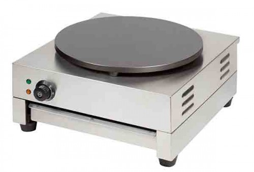 Aparat clatite-crepiera simplu din inox, termostat de temperatura, buton pornit/oprit, alimentare 220V, putere 3000 W, diametru 40 mm, greutate 22,5 kg
