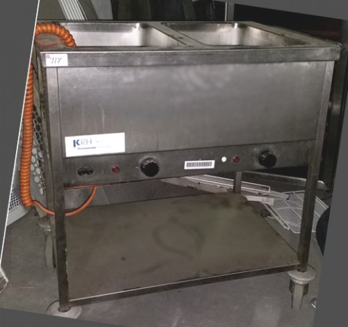 717BM | Bain marie inox dublu electric pe suport deschis, second hand, Capacitare 2 GN 1/1, prevazuta cu polita, temperatura 30 - 110 grd C, alimentare 220V/50 Hz, greutate 20 kg | 800x600x900 (mm) | 358 € |