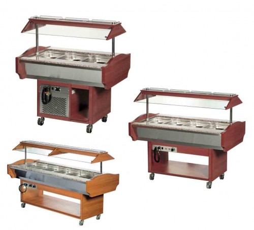 Vitrina calda pentru bufet, capacitate 4 GN 1/1, cadru si suport imitatie lemn (culoare - mahon/nuc), top granit, Putere 3026 W, alimentare 220V/50 Hz, Greutate 172 kg |