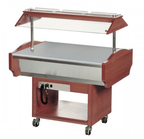 Vitrina neutra pentru bufet, cadru si suport imitatie lemn (culoare - mahon/nuc), blat granit, Putere 2x13 W, alimentare 220V, polita superioara prevazuta cu lumina, greutate 240 kg |