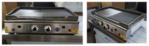 KRCS-SEIDG70CE | Gratar gaz cu placa fonta 1/2 neteda 1/2 striata de banc, putere 14 kW, greutate 30 kg | 700x400x200 mm | 350 € |