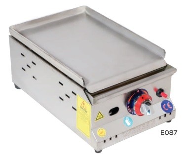 E087 | Gratar structura inox, cu placa de coacere din otel grosime 5 mm cu suprafata neteda, putere 2,5 kW, alimentare gaz, greutate 18 kg | 300x510x200 | 720 lei |
