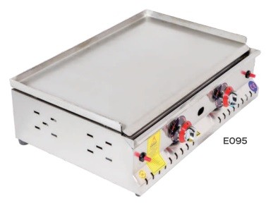 E095 | Gratar structura inox, cu placa de coacere din otel grosime 5 mm cu suprafata neteda, putere 5 kW, alimentare gaz, greutate 28 kg | 700x460x200 | 1095 lei |