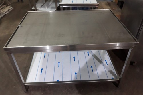 Banc de lucru din tabla perforata din inox si polita intermediara