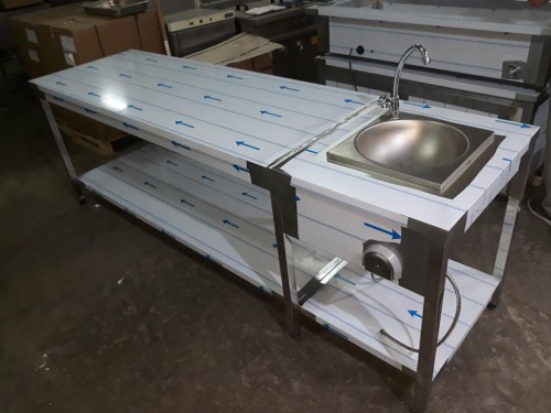 Mobilier inox compus din masa inox de lucru si spalator cu actionare la genunchi dimensiuni 2500x700x850 mm