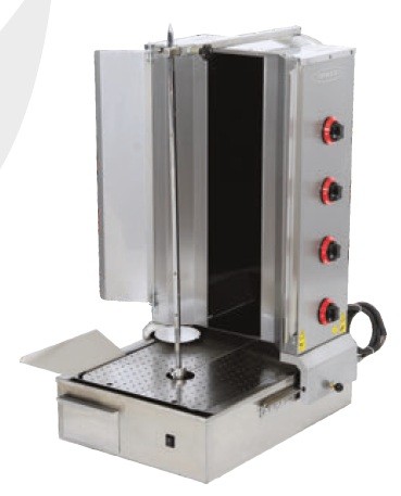 KRCS-AMDOE4 | Aparat electric shaorma / kebab, 4 elementi incalzire cu geam termorezistent, motor jos, Putere 6 kW, alimentare 380V/50 Hz, greutate 40 kg | 550x700x1200 mm | 720 € |