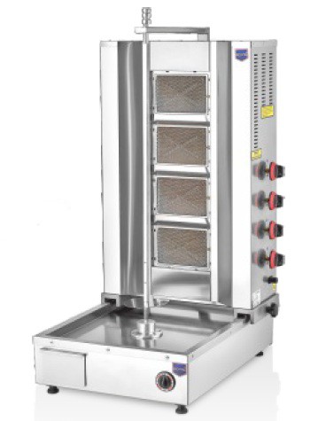 | D08(A) | Aparat shaorma/ kebab pe gaz 4 arzatoare, motor jos, valva protectie gaz, putere 13kW, capacitate maxima 50 kg, viteza de rotatie 2,5 rpm, inaltime tepusa 80cm, greutate 37 kg |